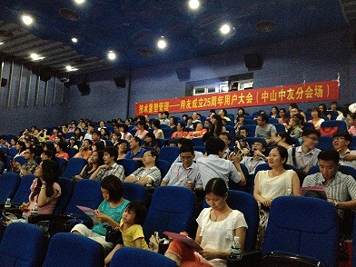 (2013年9月7日, 中山) “技术重塑管理-2013用友成立25周年用户大会“中山中友分会场在中山文化艺术中心与北京主会场视频连线同步隆重举行。本次大会中山分会场由中山中友计算机科技有限公司主办,中山各届企业专家人士与用友软件股份有限公司北京主会场知名经济学家、企业家、管理信息化专家等3650多人共聚一堂,共话技术重塑管理,分享企业管理和信息化的新技术、新模式、新世界。