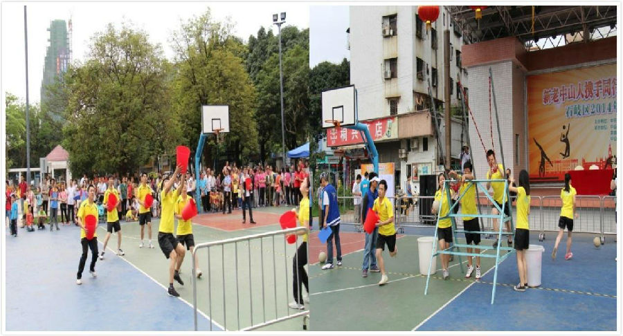 2014年4月26日上午,我们公司参加了由中共中山市石岐区工作委员会主办的“新老中山人携手同行,共圆幸福和美石岐”职工趣味运动会; 上午8:30分,趣味运动会在热火朝天的参与氛围中拉开序幕,本次活动共分为5个大项,分别是:坦克车、巧接炮弹、大鞋子、旋转大滚筒、呼啦圈接力;