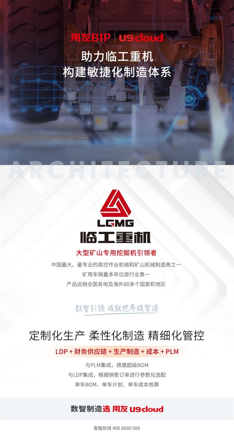 临工重机正是以U9 cloud为依托,通过与集团总部的LDP营销系统、PLM系统无缝集成,搭建超级BOM支持客户个性化需求,实现按订单设计与制造,为企业构建高端制造体系奠定基础。