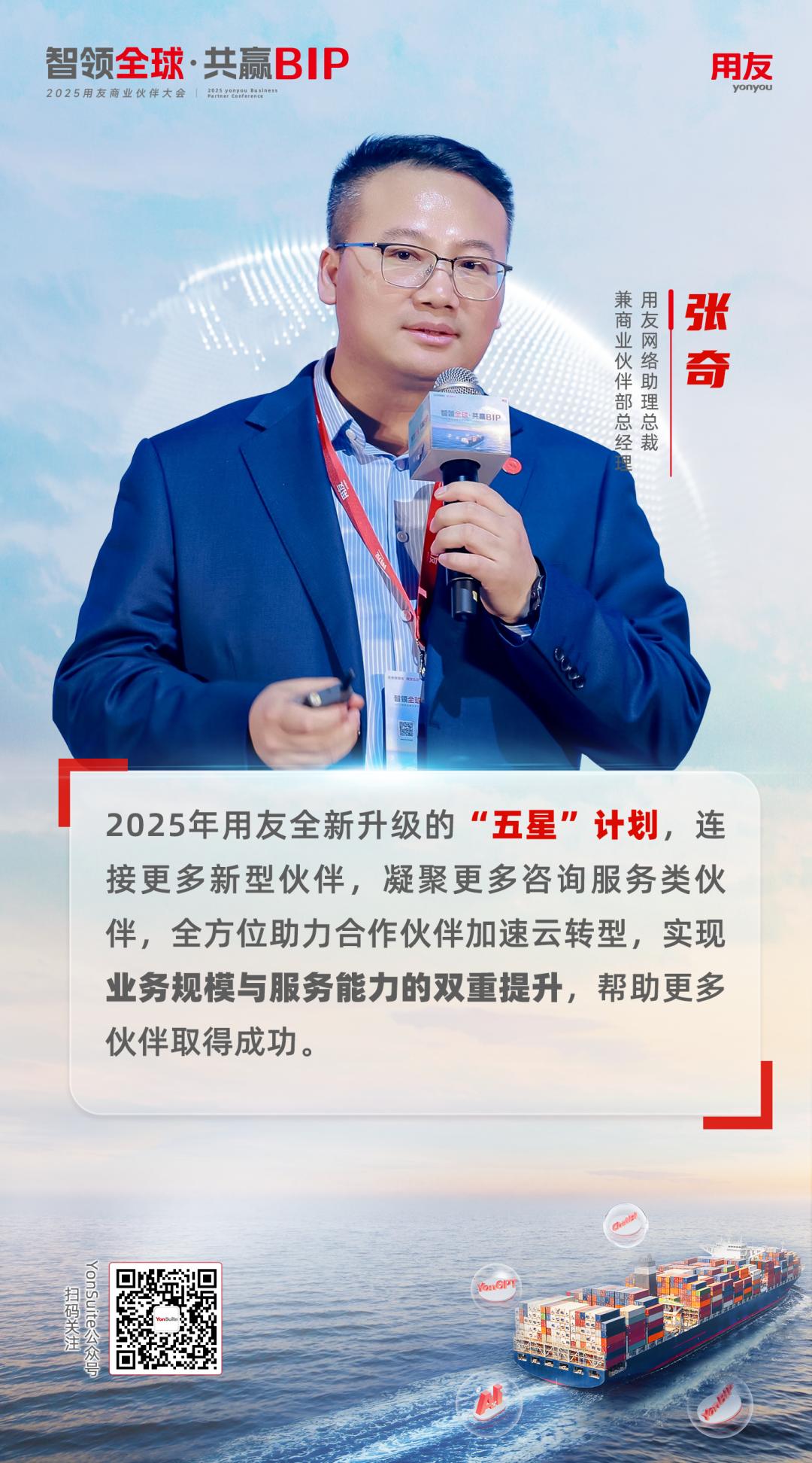 特别重要的是,在本次大会上,徐洋隆重发布了2025年用友全新升级的五“星”计划,该计划涵盖启明星、满天星、超新星、中子星与核聚星等多五大星计划。通过五“星”计划,用友旨在连接更多新型伙伴,凝聚更多咨询服务类伙伴,从而构建一个技术赋能、资源协同、市场拓展的全链路支持与服务体系。通过五“星”计划全方位助力合作伙伴加速云转型,实现业务规模与服务能力的双重提升,帮助更多伙伴取得更大的成功。