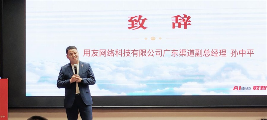 用友网络股份科技有限公司广东区渠道副总经理 孙中平在致辞中讲到,AI的时代已来临,我们要主动去拥抱AI,同时也要正确解读AI。AI不仅是技术革命,更是企业构建战略竞争力的关键。用友一直秉承做用户之友的服务理念,全心全意的服务好我们的客户。用友作为国内ERP厂商的领军人物,更是在这几年推出我们全新的BIP商业创新平台,随着AI技术的不断更新和完善,用友也接入多个AI平台,使我们平台更加智能化,客户运用更简单和高效。