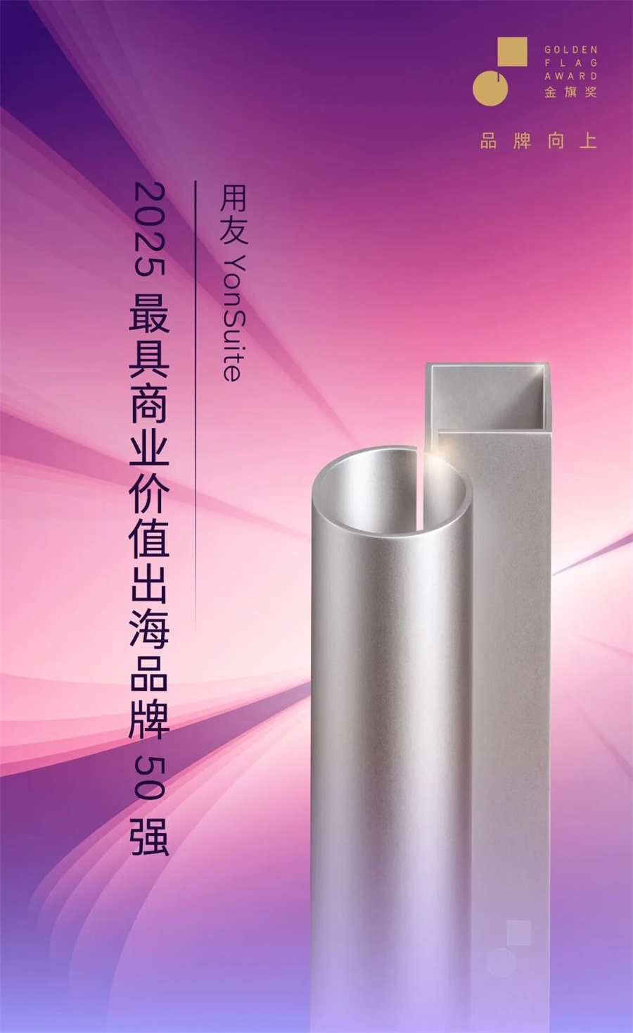 “金旗年度品牌榜”作为品牌界的权威标杆,旨在嘉奖那些以商业价值驱动可持续增长、在品牌建设领域取得杰出成就的卓越品牌。评选聚焦品牌的创新力、增长力、品牌力、数字力与价值力五大核心维度。YonSuite此次获奖,正是对其在这五大维度,尤其是在赋能中国品牌“走出去”和帮助全球企业“走进来”的卓越表现的最好印证。