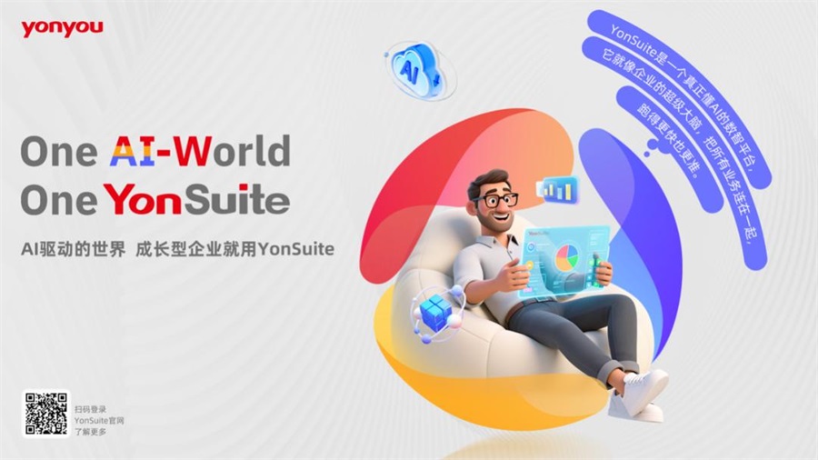 “One AI-World” 代表YonSuite对未来商业形态的判断:企业运营将全面进入“AI驱动”时代。基于YonGPT企业服务大模型,YonSuite让AI深度嵌入财务、人力、供应链、营销等关键业务链路,并形成由数千个智能体组成的企业级智能网络——从智能会计、预测性库存,到智能销售与实时分析,AI不再是概念,而是企业7×24小时可调用的生产力。