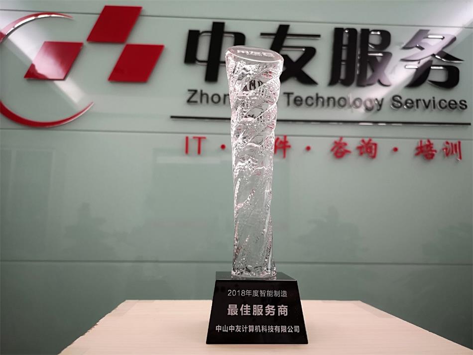 近日,中山中友计算机科技有限公司获得2018年度智能制造“最佳服务商”和“立信示范单位”两项荣誉称号。