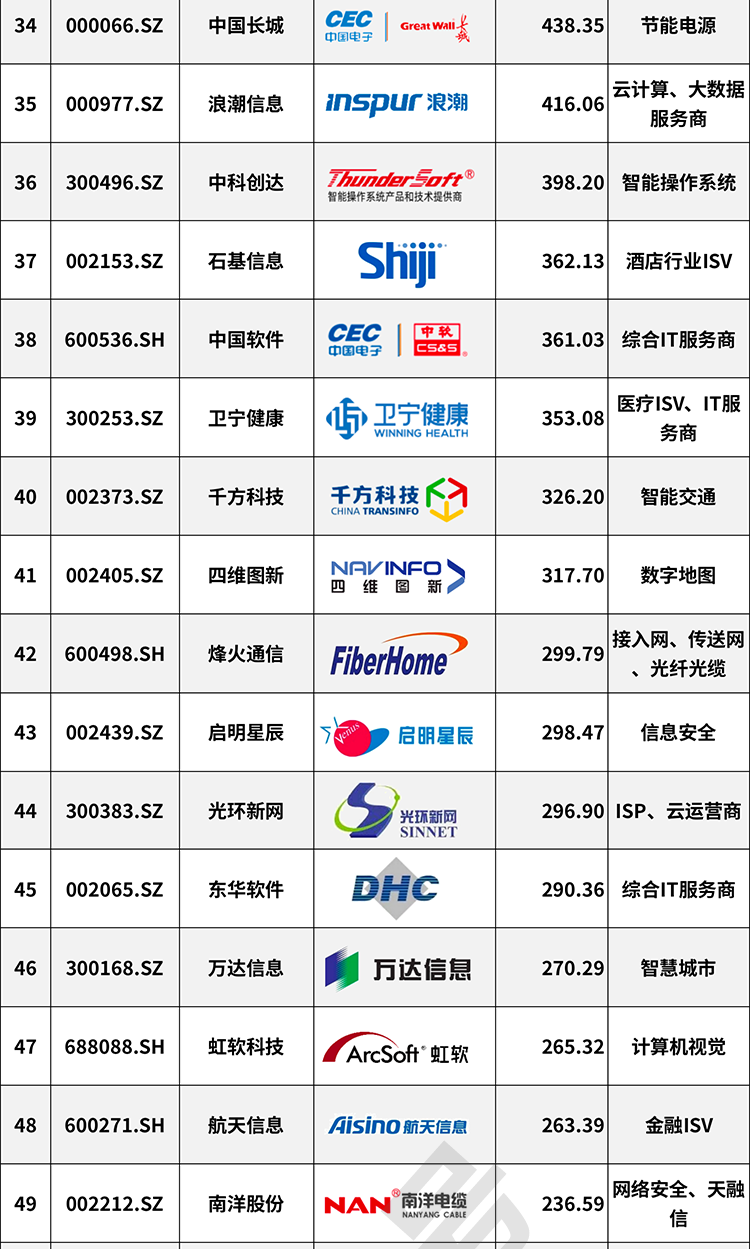 本榜单涵盖了