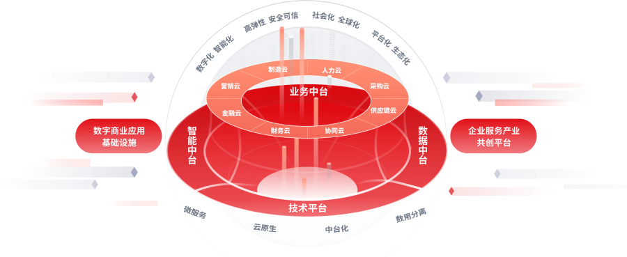 创新发展中的用友云服务,助力企业实现从以流程驱动为核心的规范管理,到以数据驱动为核心的智慧管理,助力企业在数字化商业阶段重塑核心竞争力