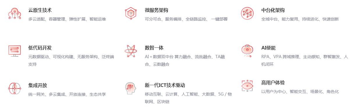 以用户体验、客户价值为目标的技术创新与发展,满足多样的业务场景需求,赋能客户、生态伙伴、社会,共享共创,成就数智企业,推动商业创新